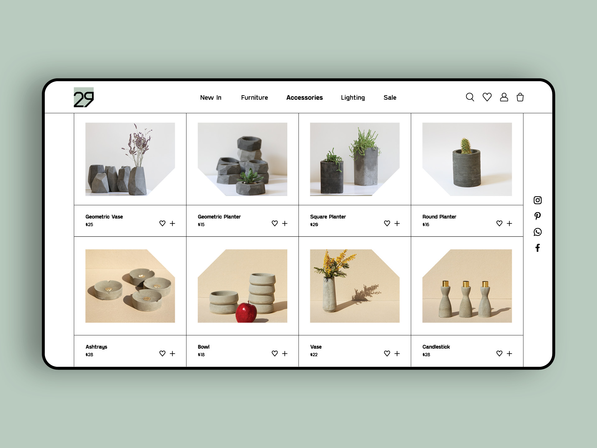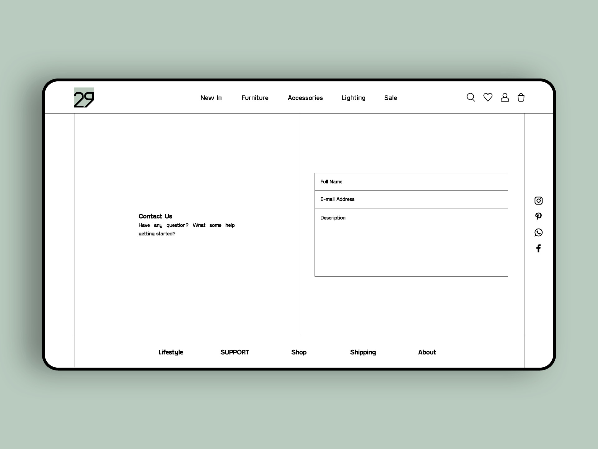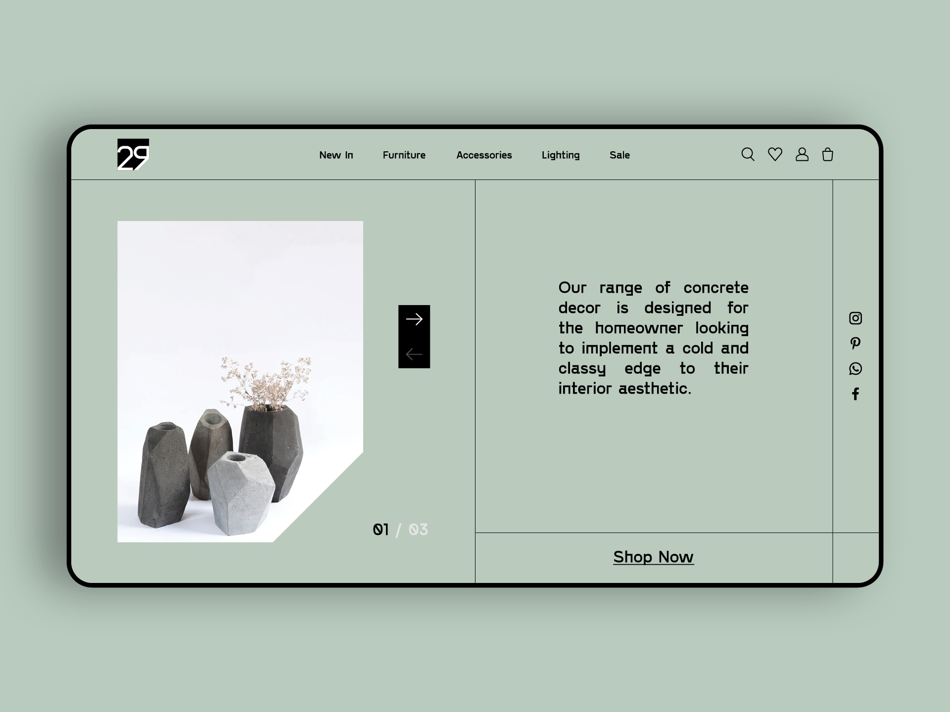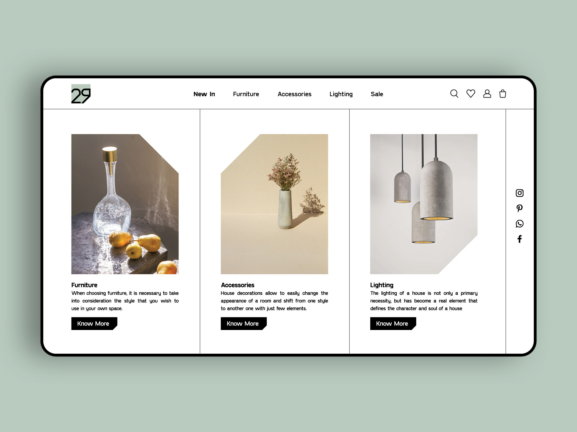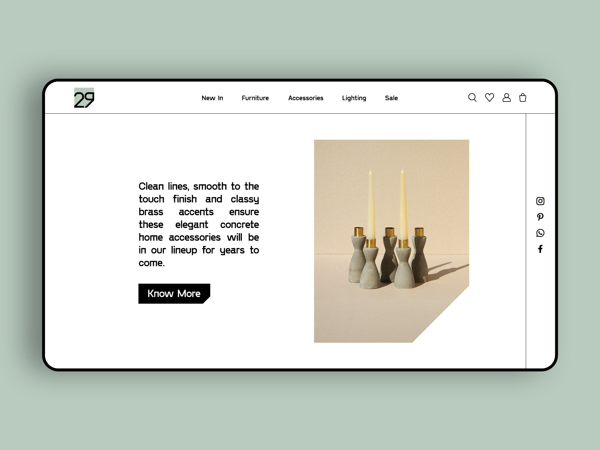 Ghat’e 29 is a modern/minimalist home decor online shop. I designed a minimalist UI to approach their style of works and used the form of the logo to make a unique frame for photos.