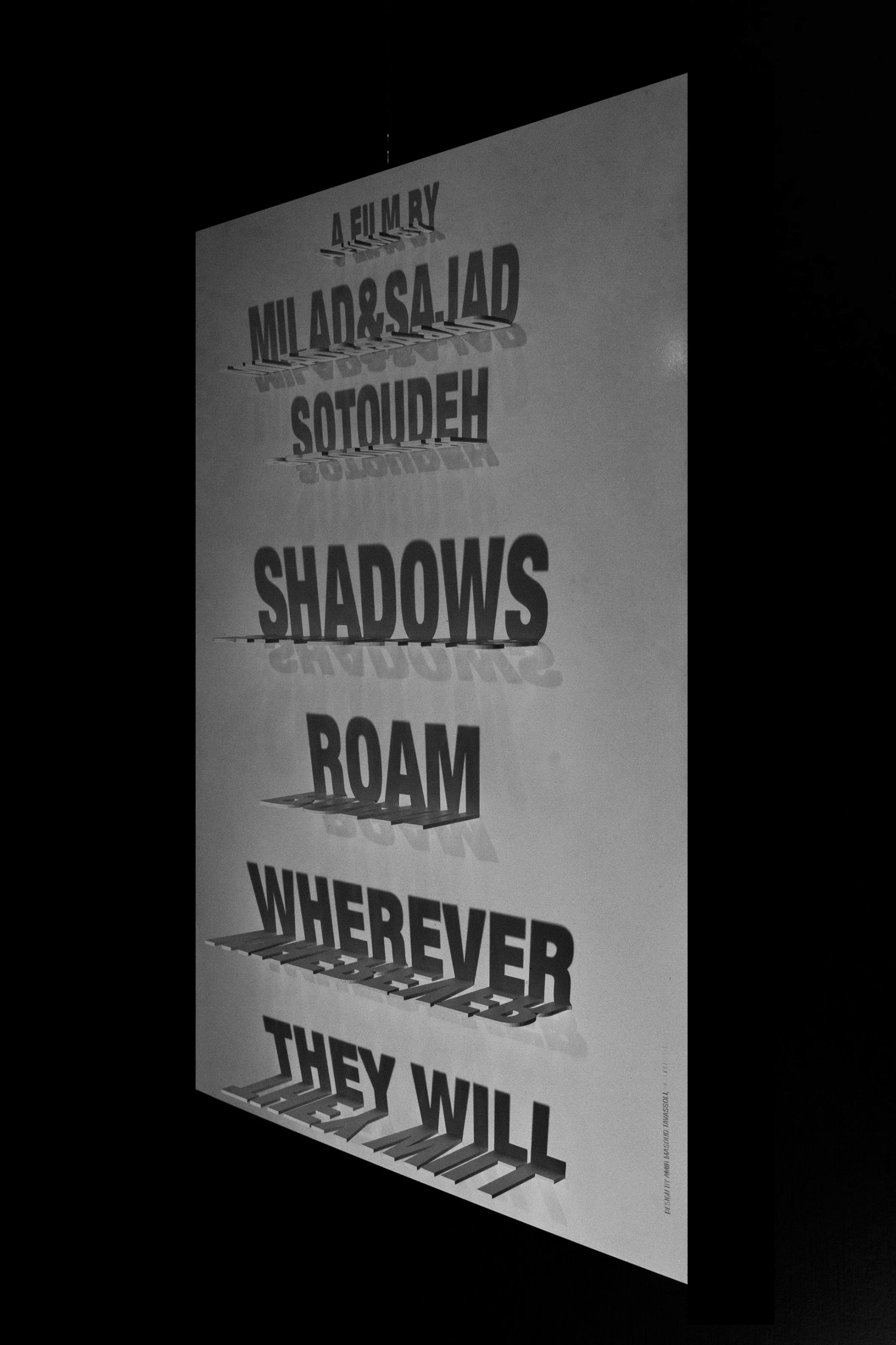 Regarding the movie name-the Shadows Roam Wherever They Will, this poster is designed to be seen as a bulk(3D). The content of the movie is surfing around only shadows-not masses- during a day. The alphabets have been cut from plexiglass and are glued vertically on a 50*70 surface. To set up and make these alphabet play their role you need to shine a light to see the shadows appear. I tried to put away using computer and make a new form of poster making.